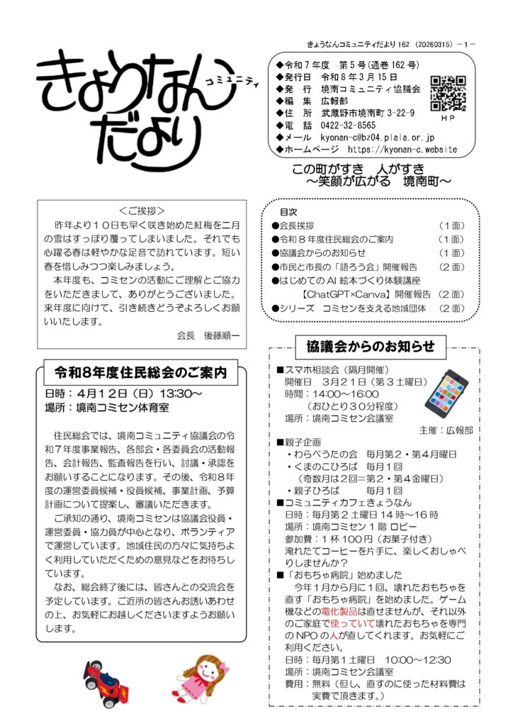 きょうなんだより162号(2026年3月15日) 2026年3月21日 最終更新日時 : 2026年3月21日 サイト管理人 FacebooktwitterHatenaCopy kyonandayori162ダウンロード FacebooktwitterHatenaCopy